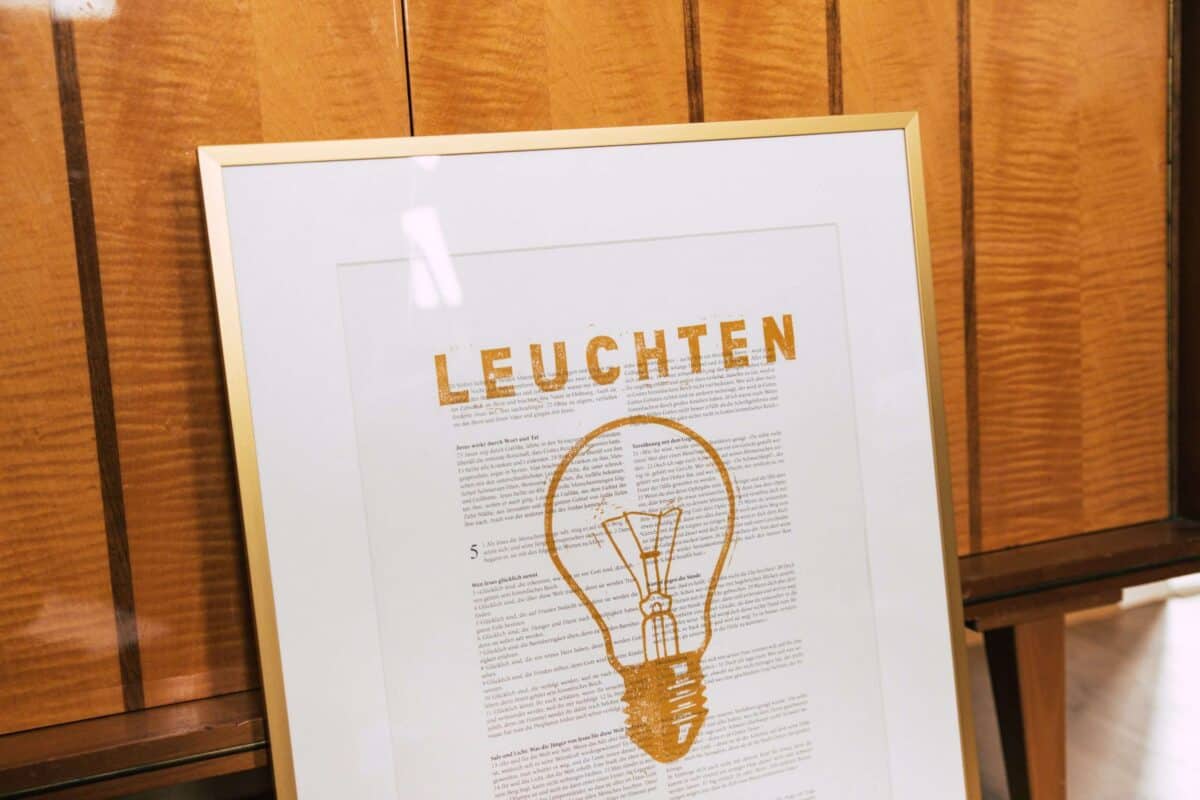 LEUCHTEN. dieser Kunstdruck soll dich ermutigen in deinem persönlichen Umfeld für Gott zu leuchten. die Glühbirne erinnert an den Auftrag von Jesus, ein Licht in der Welt zu sein.