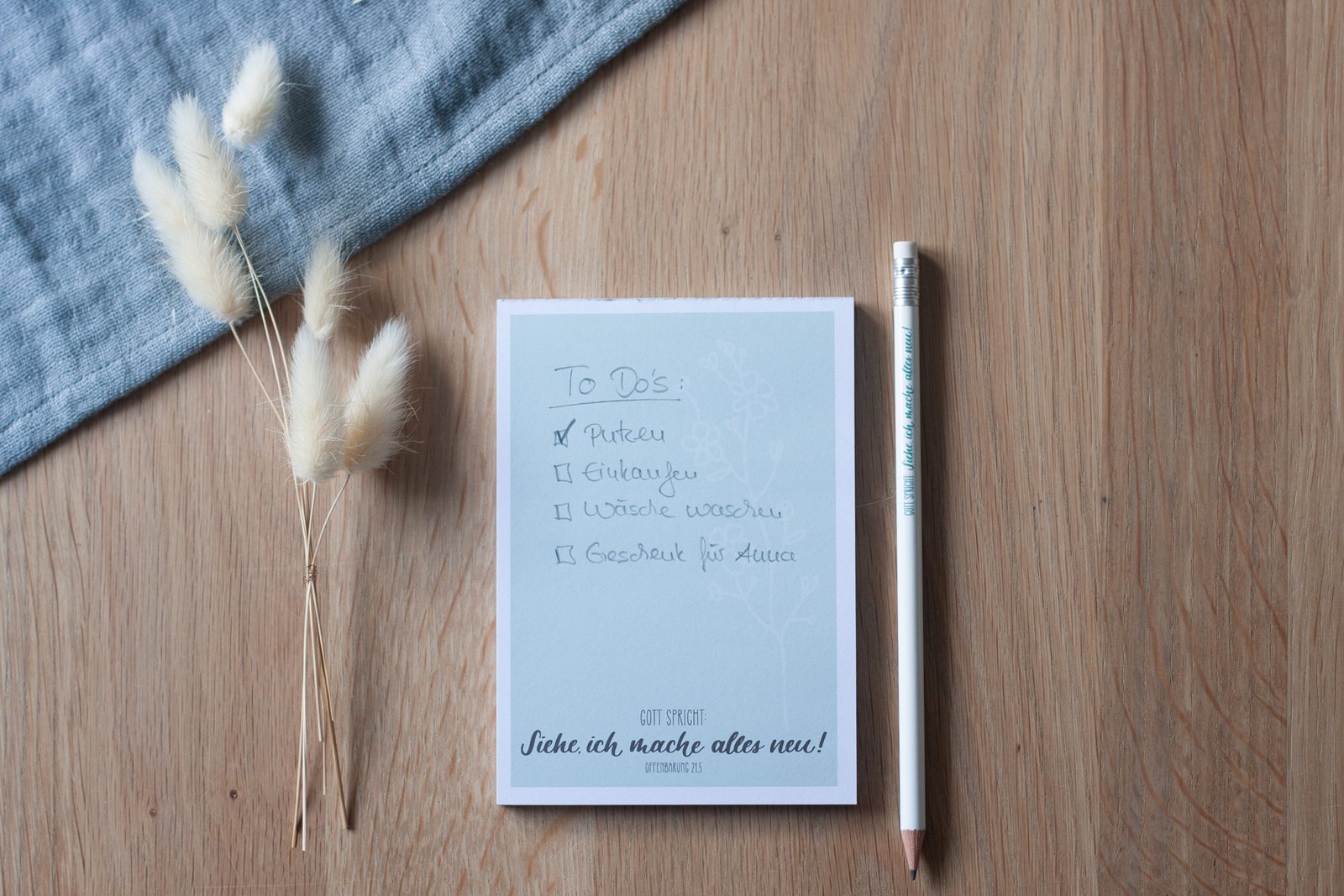 Dieses liebevoll gestaltete Schreibset zur Jahreslosung 2026 ist mehr als nur ein praktisches Set für den Schreibtisch – es ist eine tägliche Einladung, Gott zu vertrauen und Neues zu wagen. Inspiriert von der Jahreslosung aus Offenbarung 21,5 – „Gott spricht: Siehe, ich mache alles neu!“ begleitet es dich durch den Alltag mit Hoffnung, Schönheit und einer leisen Erinnerung an Gottes erneuernde Kraft. Es ist ein kleines, sinnvolles Geschenk mit Tiefe, das Herz und Hand inspiriert.
