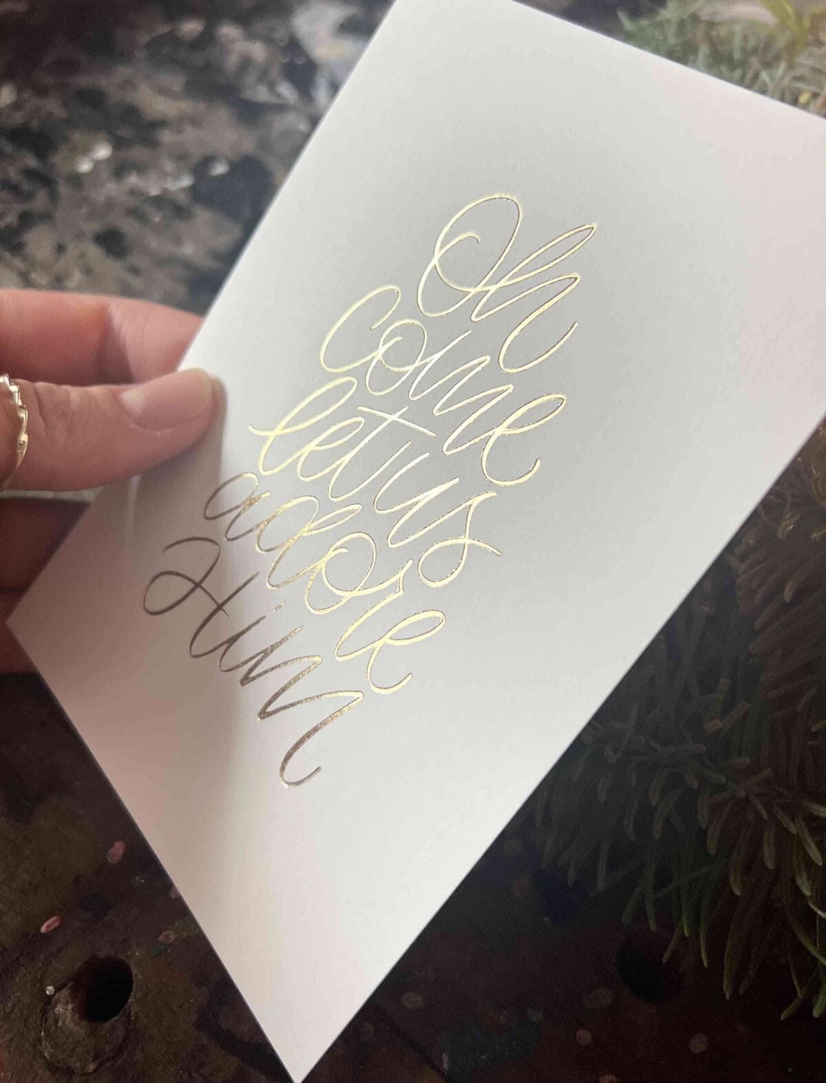 5  Postkarten (A6) auf 400gr Naturpapier mit Goldfolienveredelung. Die Postkarte ist auf der Rückseite beschreibbar.
