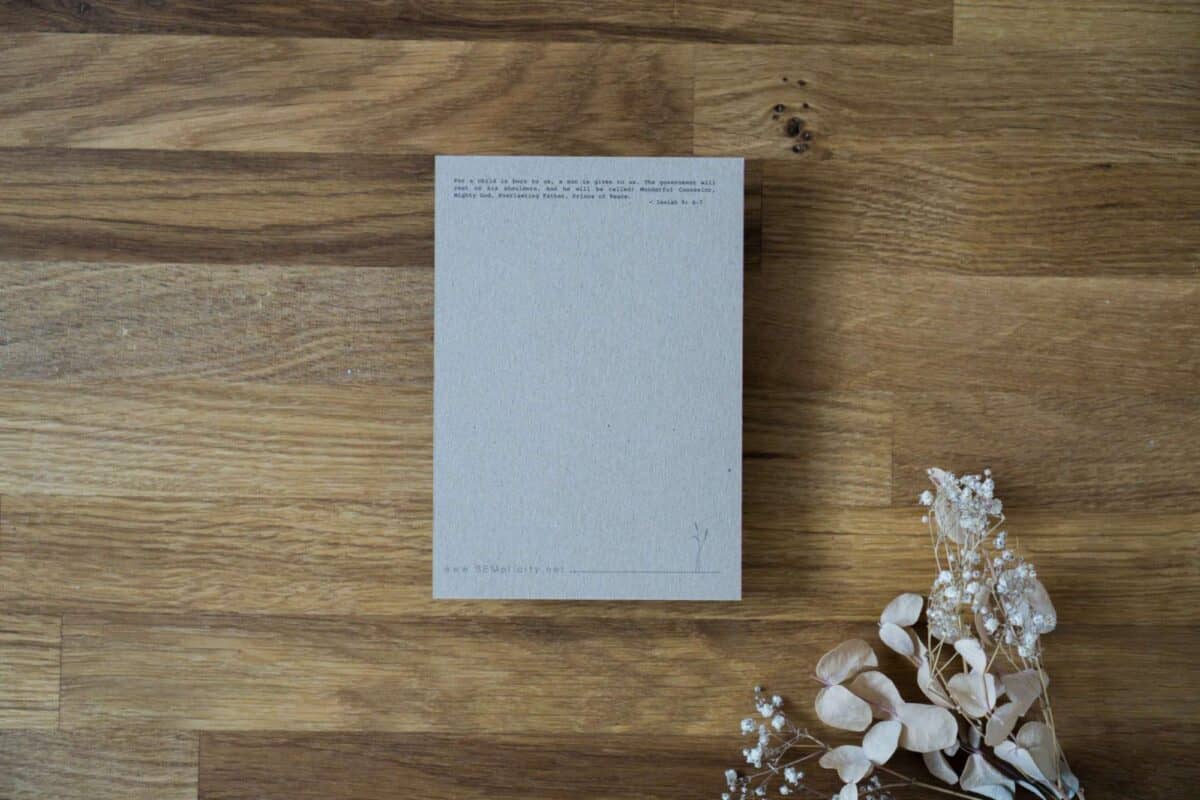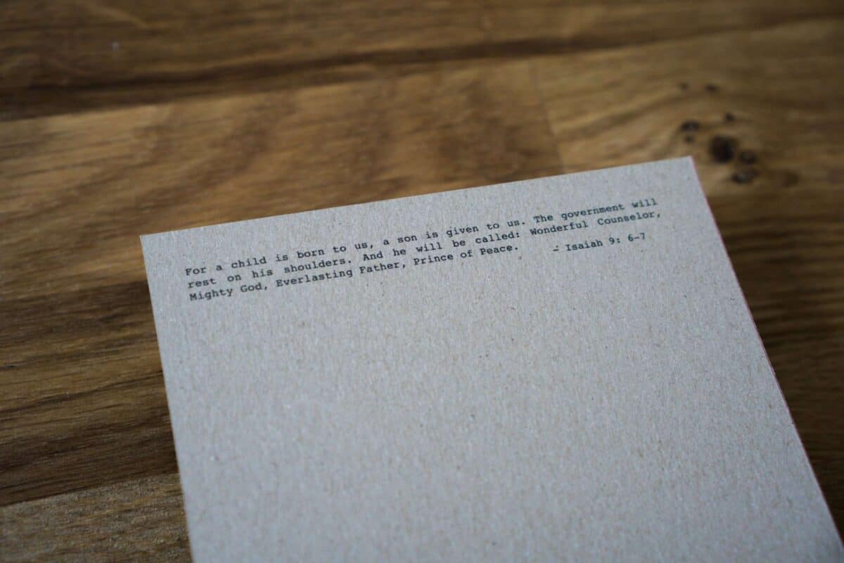 Rückseite: “Blanco” (mit Bibelvers: Isaiah 9:6-7)