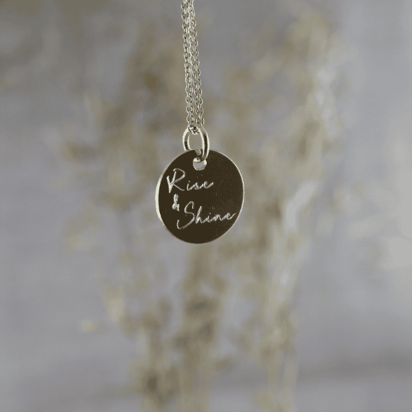 Der schlichte Anhänger trägt die Worte RISE & SHINE – angelehnt an den Vers aus Jesaja:
