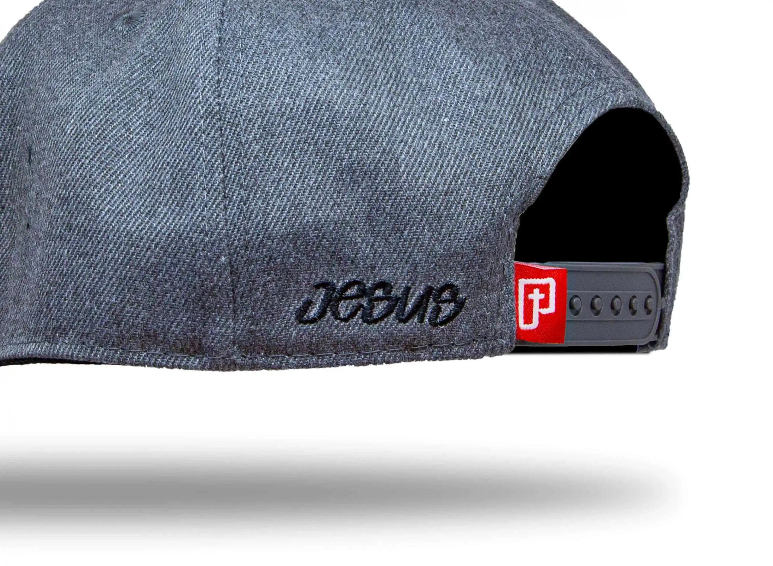und einem 2D Druck hinten links “Jesus”, mit einem Snapbackverschluss, gefertigt aus Acryl
